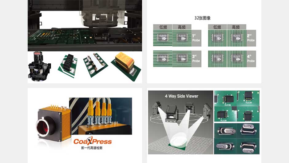 數字變頻投影技術利用4個3D發射頭獲取無盲點的3D圖像,結合高低頻摩爾條紋進行組件高度檢測,應用完整3D結合主相機進行精確的檢測。